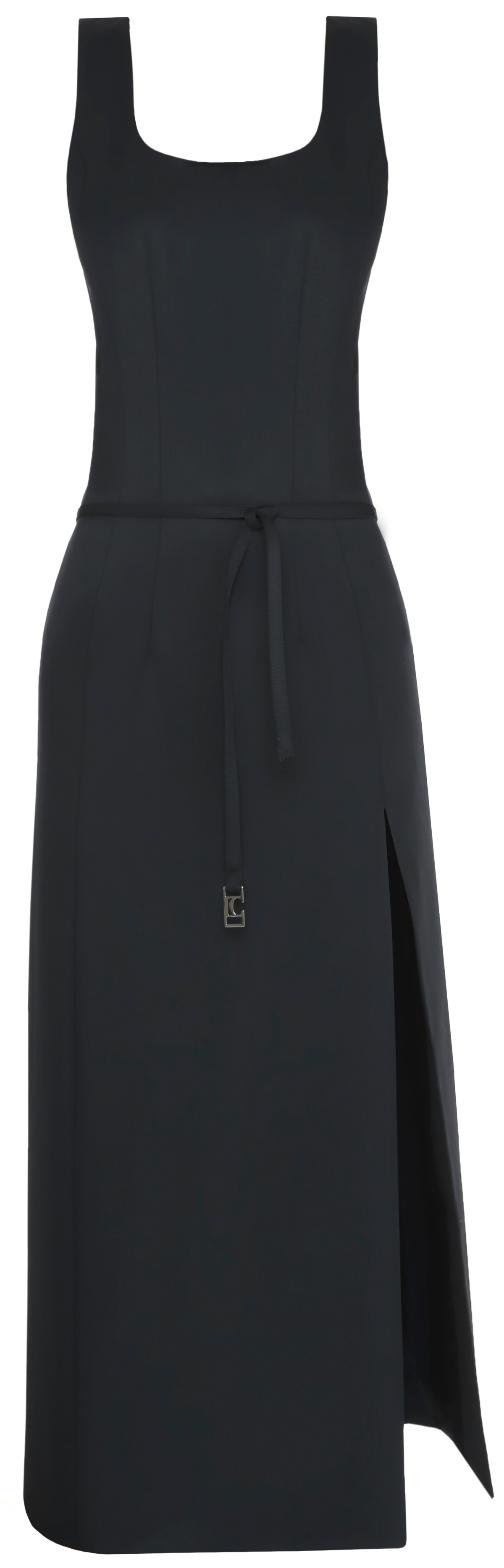 Low Classic's Blue Green Midi Dress is minimal and flattering to seamlessly work into regular rotation. Cut from lightweight suiting fabric to update day-to-day with a dose of comfort, the piece features a slim fit along with a tank top reminiscent upper top and a thigh-high slit for a slightly alluring touch.