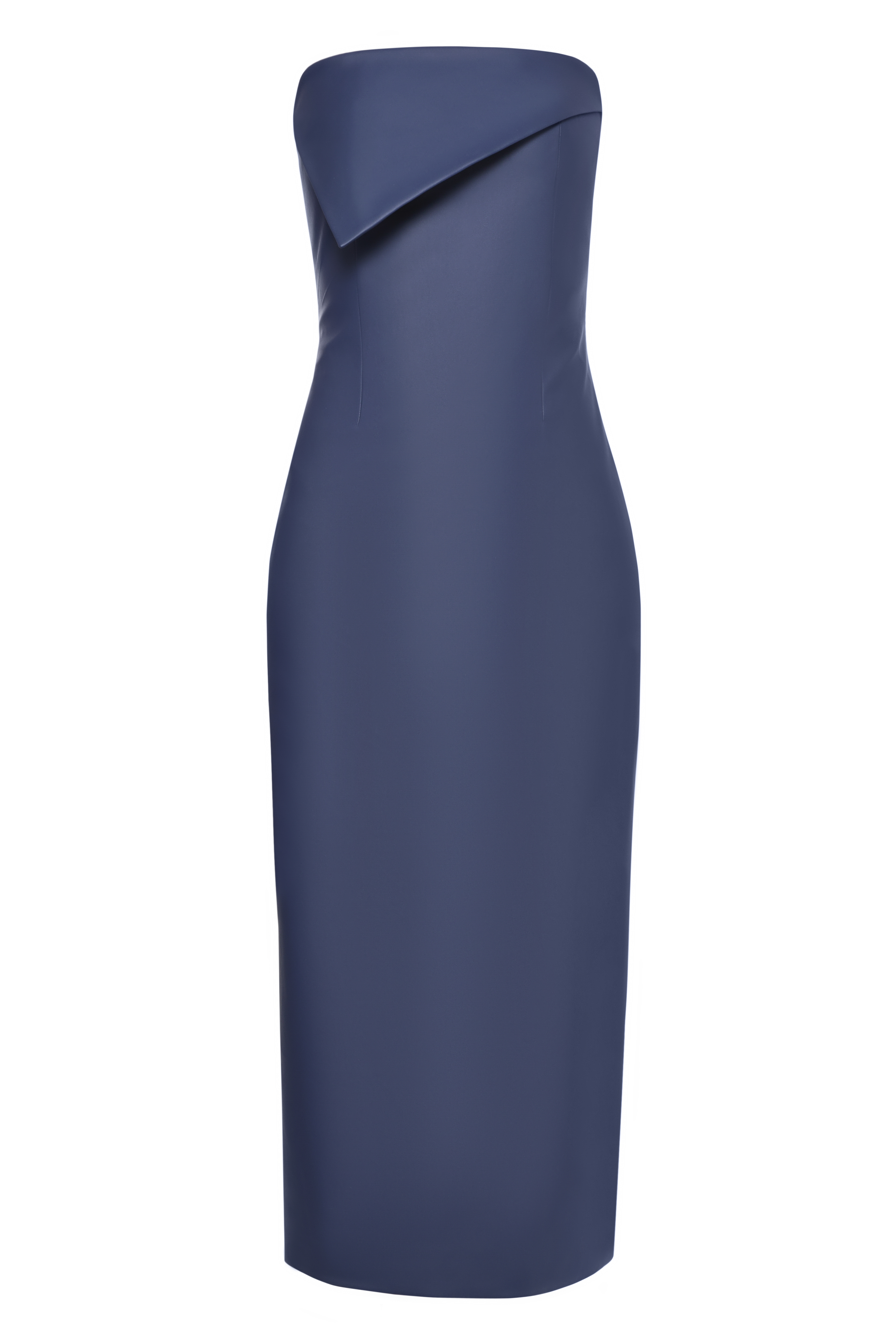 When you think of sleek designs, leather garments come to mind. Kris Maran's Blue Asymmetric Midi Dress is crafted from such material with a butter-soft texture offering a second-skin fit and svelte finish. The piece fastens with a back zip closure and is cut to have a simplistic strapless profile that is detailed with a fold-over detail for a dose of character.